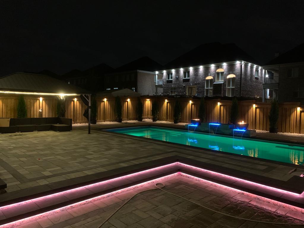 Landscape and security lighting for backyard area.