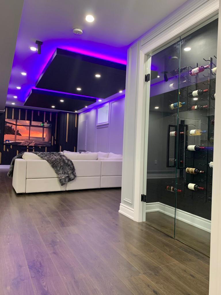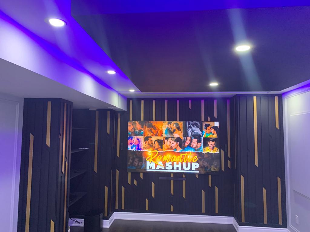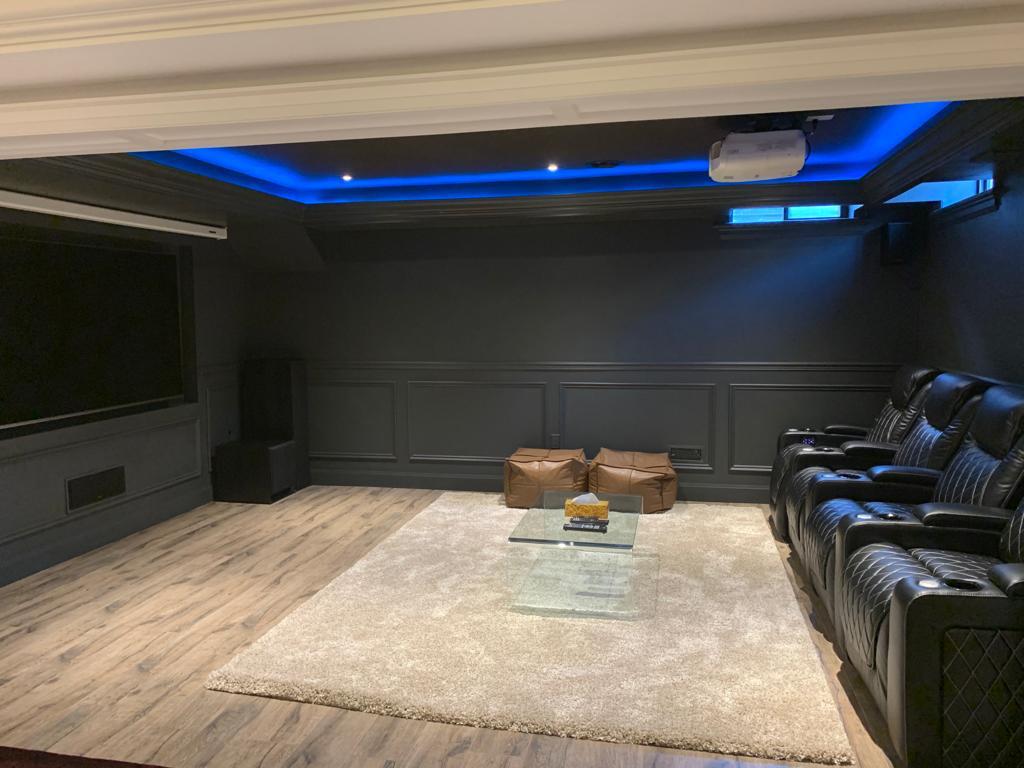 Home theater lighting installation with smart controls.