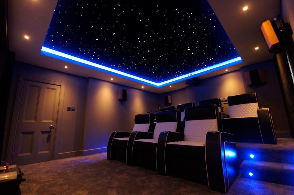 Starlite roof lighting installation and home theater setup.
